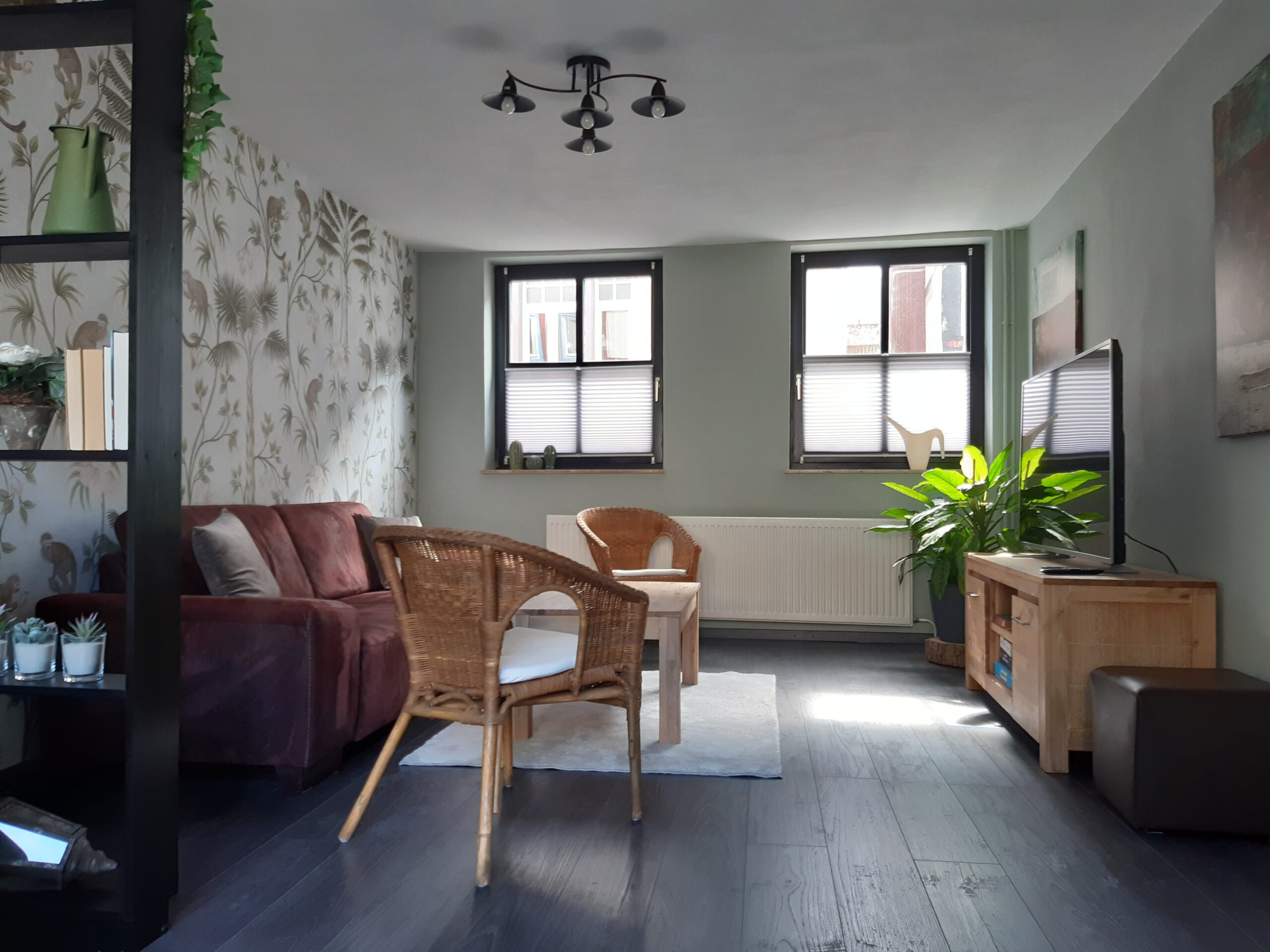 Gleich nebenan befindet sich das Wohnzimmer mit TV/SAT und einer gemütlichen Leseecke mit Blick auf den Innenhof.